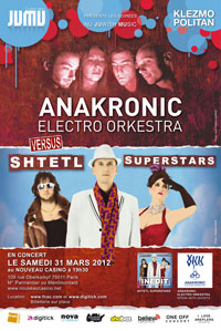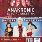 C’est à Toulouse qu’a émergé l’un des courants les plus inventif du klezmer actuel, cette musique traditionnelle juive d’Europe de l’Est, transportée par Anakronic Electro Orkestra sur des territoires inconnus, revue et actualisée par une injection de reggae, de hip-hop, de ska, de drum and bass. Anakronic Electro Orkestra est l’un des meilleurs groupes de musique électro-klezmer de la scène Européenne. Les thèmes traditionnels askhenazes sont ici enrichis par les manipulations du DJ ou de l’électro. Le groupe propose un bal populaire survolté et très inventif, du klezmer relevé aux épices trip-hop et dub…