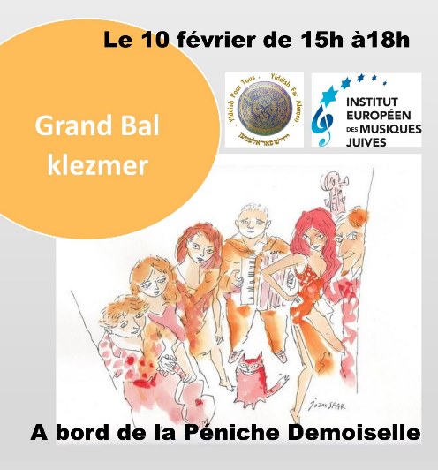Les Marx Sisters et la Péniche Demoiselle, en partenariat avec l’Institut Européen des Musiques Juives et l’Association Yiddish Pour Tous vous invitent à leur 1er bal klezmer.