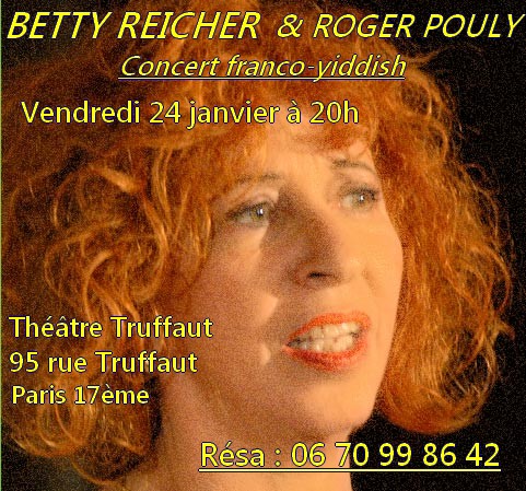 Betty Reicher accompagnée au piano par Roger Pouly, chantera des chansons d’un répertoire franco-yiddish.