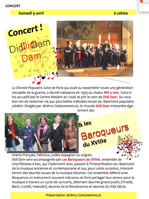 La Chorale Populaire Juive de Paris qui avait su rassembler toute une génération rescapée de la guerre, a donné naissance en 1993 au chœur Mit a tam. Celui-ci fut accueilli par le Centre Medem en 2006 et prit le nom de Didl Dam. Sa vocation est de redonner vie aux plus belles mélodies issues du répertoire populaire yiddish. Dirigée par Jérémy Gerszanowilsz, la chorale Didl Dam interprète également des chants français, hébreux, judéo-espagnol ou anglais.