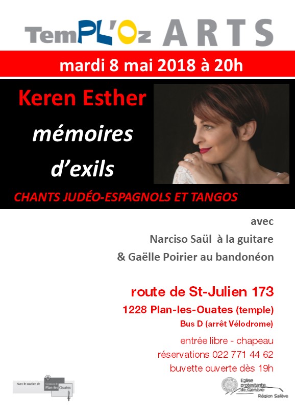 Mémoires qui se croisent, mémoires d’exil qui se déroulent comme un fil tout au long de ce concert ponctué de chansons judéo-espagnols mais aussi de tangos et saupoudré de textes poétiques écrits par Keren Esther. Univers singulier créé musicalement par les arrangements du guitariste Narciso Saùl, et sublimé par le bandonéon de Gaëlle Poirier.