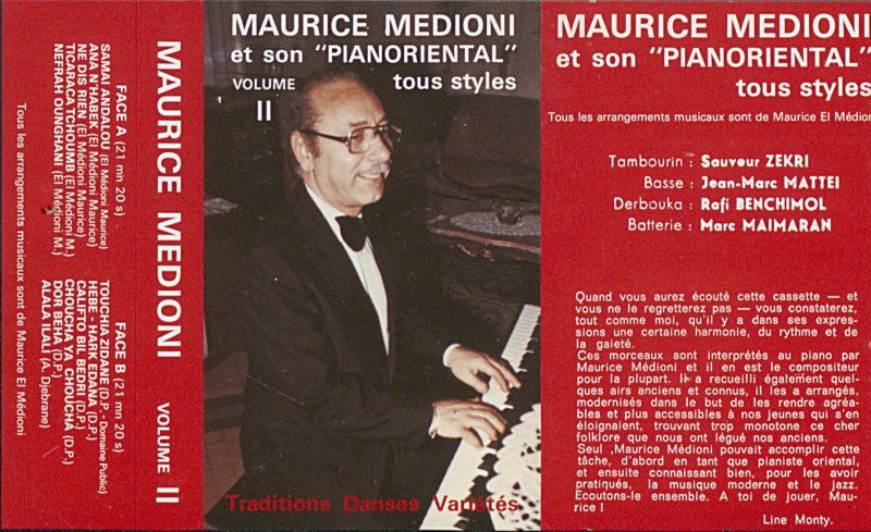 Der in Oran (Algerien) geborene Pianist, Komponist, Musikarrangeur und Interpret Maurice El Médioni (1928-2024) war einer der wichtigsten Vertreter der arabisch-andalusischen Musik, des Rai und des frankarabischen Chansons. Während seiner langen Karriere begleitete er die berühmtesten Sänger (Line Monty, Reinette l’oranaise, Samy Elmaghriby, Lili Boniche, Blond-Blond…) mit seinem einzigartigen Stil, der die orientalische Musik mit den Rhythmen des Jazz und der lateinamerikanischen Musik (Rumba, Cha-Cha-Cha…) vermischte.