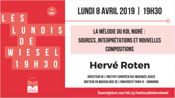 Diese „musikalische Anomalie“ hat den Glauben der Gläubigen geschürt und viele Komponisten inspiriert, von Max Bruch bis John Zorn, von Louis Lewandowski bis Joachim Stutschewsky. Dieser audiovisuelle Vortrag von Hervé Roten wird uns auf eine musikalische Zeit- und Raumreise in das Herz der jüdischen Liturgie und ihrer Musik mitnehmen.