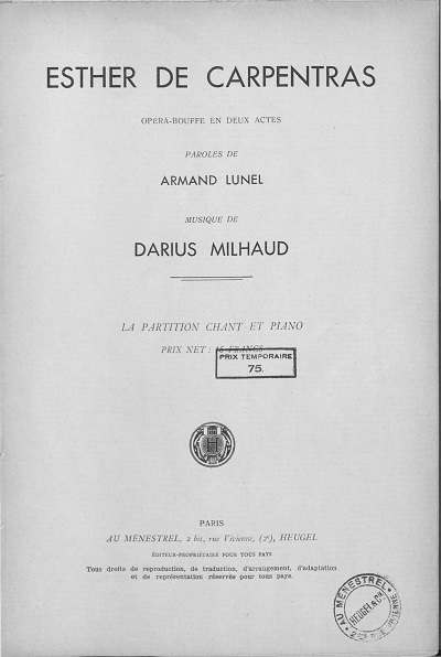 Esther de Carpentras ist eine vom Pourim-Shpil inspirierte Opera buffa in zwei Akten, deren Begleitheft von Armand Lunel geschrieben und deren Musik von Darius Milhaud komponiert wurde. Die Oper wurde am 1. Februar 1938 in der Opéra Comique von Paris uraufgeführt.