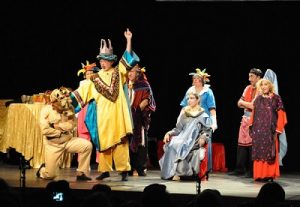 Doch erst fast 30 Jahre später wurden diese Megile-lieder zu einem echten Pourim-Shpil mit verkleideten Schauspielern, welche vor einem staunenden Publikum spielten und sangen. Unter der Regie von Shmuel Bunim und mit der Musik von Dov Seltzer wurde dieses Stück zunächst in einem Theater im alten Jaffa aufgeführt und tourte dann durch die Vereinigten Staaten. Anschließend wurde das Stück von verschiedenen Theaterkompanien in Strasbourg, Dresden, Tel Aviv, Montreal, New York, auf Jiddisch, Hebräisch, Jiddisch und Hebräisch oder Jiddisch und Französisch aufgeführt…