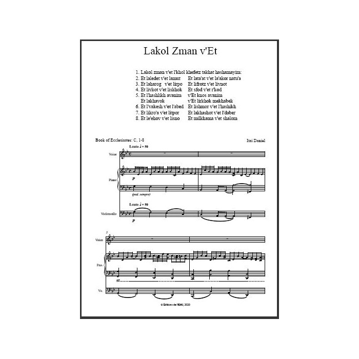 Daniel – Lakol Zman v’Et, for soprano, cello and piano