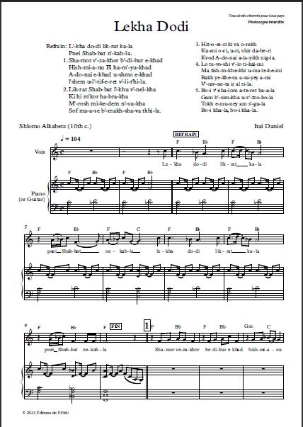 In 2004, Itai Daniel moves to Paris and decides to devote himself to composition. Among his major works in the Jewish tradition are three large cantatas (Mahzor Hayim, Shma Koleinu and B’reshït) and many compositions, large and small, based on major Jewish prayers and texts (Kaddish, Oseh Shalom, Adon Olam, Kol Nidrei, Yotzer, Haskivenu, Shalom Rav and many others). Among his non-Jewish compositions are a piano sonata, a flute sonata, an Elégie for cello and piano and Shlosha Yeladim for soprano and piano (dedicated to the children perished during the Holocaust). His works have been performed in England, the United States, Germany, Italy, South Africa, and France.