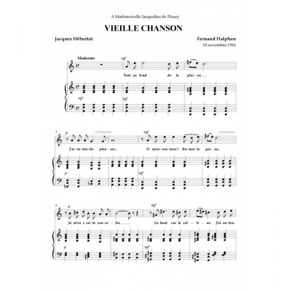 In his short lifetime, Halphen composed nearly 100 melodies, over 30 pieces for piano, duets (particularly for violin and piano), a composition for string trio and one for piano trio, orchestral suites, a symphony in C minor dedicated to Fauré (1898) and Le Cor Fleuri, a lyric opera in one act unveiled at the Opéra-Comique theater on 10 May 1904.2 He also wrote two psalms and a synagogal hymn as well as two instrumental pieces which draw on traditional Hebrew cantilation (Andante religioso and Prière). In WWI, he served as Director of Music for an infantry regiment before succumbing in 1917 to a disease contracted while on the front.