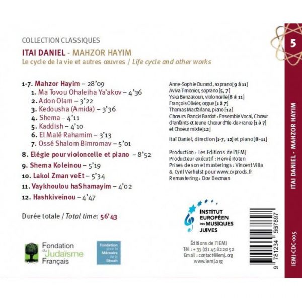 This unique record, performed by Itaï Daniel, Anne-Sophie Durand, Aviva Timonier, Yska Benzakoun, Thomas Macfarlane, François Olivier, and the Francis Bardot Choirs leads us into the deepest part of the Jewish soul