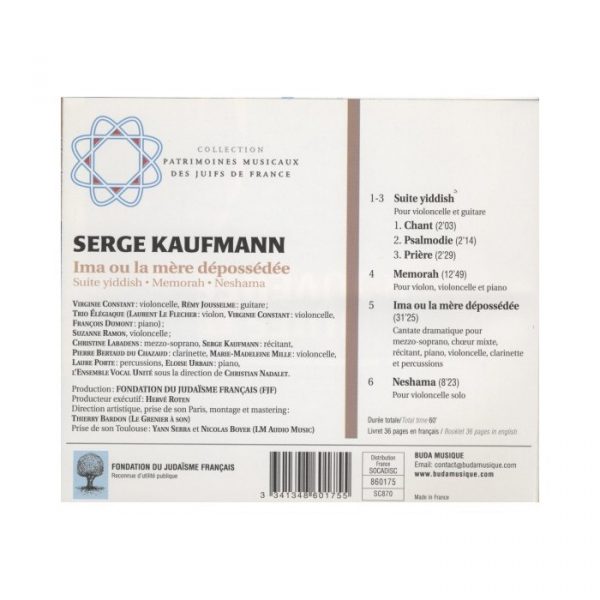Serge Kaufmann (1930-) is a composer who is deeply influenced by Judaism and the Holocaust. His works, with evocative titles such as Yiddish SuiteMemorahIma… are never built on purely traditional melodies, but they sound undeniably Jewish!