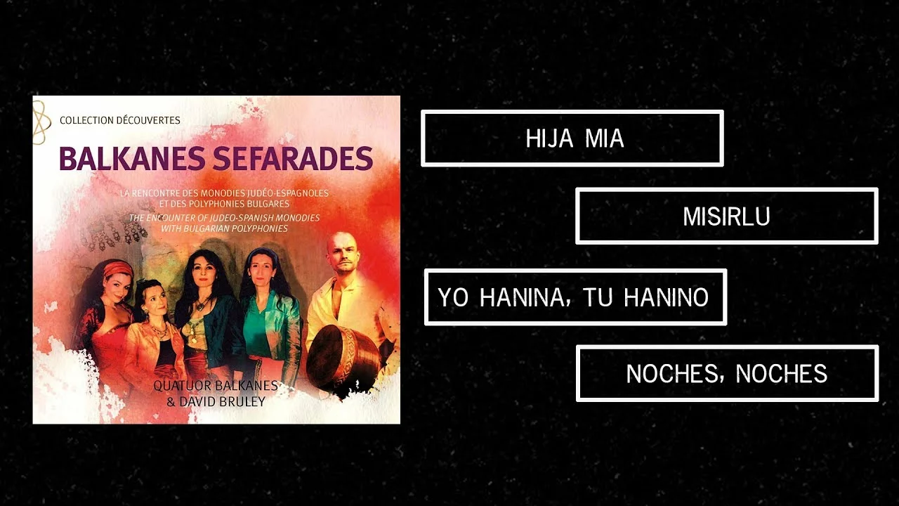 Drawing from their experience in Bulgarian singing, The Balkanes Quartet, accompanied by David Bruley (percussion) and Edmond Ghrenassia (clarinet), create a polyphonic repertoire based on traditional Judeo-Spanish songs, on which they integrated traditional Bulgarian songs showing similar modes and thematic topics.