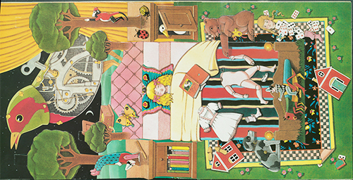 This 33 RPM disc Lullabies from all over the world, which looks quite simple at first sight, has in fact a beautiful cover in relief inspired by a painting from Henri Galeron.