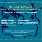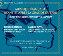 The First World War marked a deep turmoil in Europe, from which the musical creation wasn’t forgotten. Performed by the Orchestra of the Campus of Orsay, under the direction of Martin Barral, and the pianist Olivier Herbay, the works gathered in this disc illustrate this statement : Fernand Halphen’s (1872-1917) symphony in C minor still belongs to the XIXth century, where as Maurice Ravel’s (1875-1937) piano Concerto for the Left Hand, firmly turned towards modernity,.. Learn more