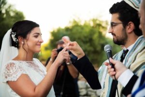 It’s a transaction: the man gives the woman a precious ring, and she accepts the gift, reserving herself for her husband, hence the term “ mekoudechet ” declared by the future husband at the same time, which in Hebrew means “consecrated” or “reserved”.