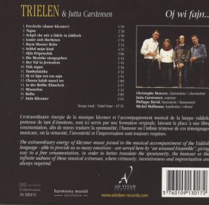 This CD of Yiddish songs and klezmer music was born after the meeting of the Trielen Ensemble with the German singer Jutta Carstsensen, singing teacher and in charge of training for musical pedagogy.