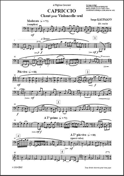 Kaufmann – Capriccio, Chant pour violoncelle seul