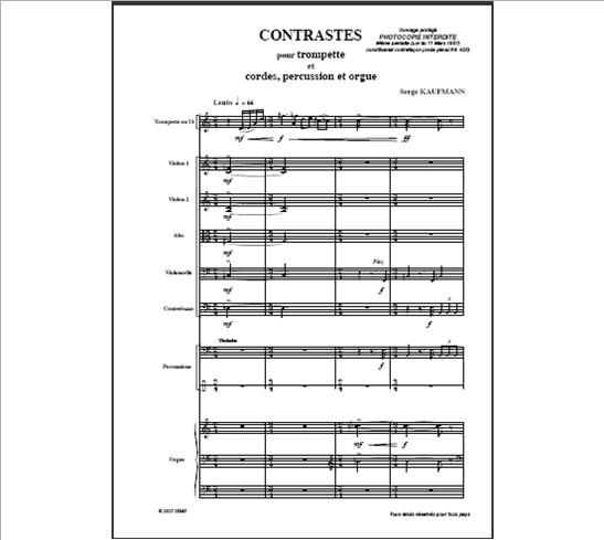 Kaufmann – CONTRASTES, for trumpet, organ, strings and percussion