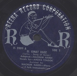 The singer in these discs Ahuva Tsadok was born in 1928 in Tel-Aviv of Yemenite parents. She was accompanied at the piano by the composer and arranger Nachum Nardi, born in 1901 in Kiev. Let us mention that Nardi also accompanied the Yemenite singer Brakha Tzefira at the beginning of her career. Nachum Nardi also founded a girls choir in which Ahuva Tsadok sang in solo. Later she would become his partner on stage, and as a couple.