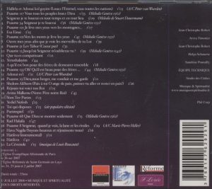 Jean-Christophe Robert, oboe; Aviva Timonier, soprano; Sandrine Pourailly, arpa y Helga Schauerte, órgano