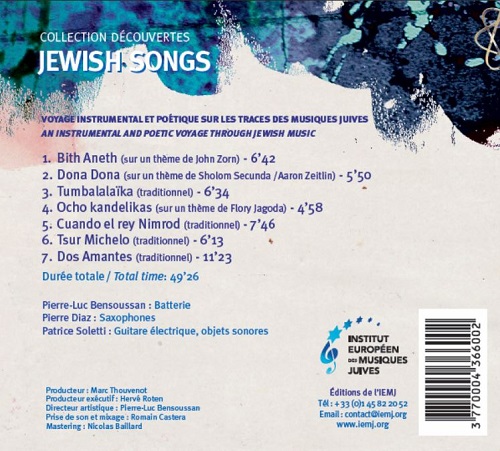 Through their thoroughly modern music, Pierre Diaz, saxophone, Patrice Soletti, guitar, and Pierre-Luc Bensoussan, drums, invite us on a fascinating voyage in search of the musical heritages of Sephardi and Eastern European Jews.