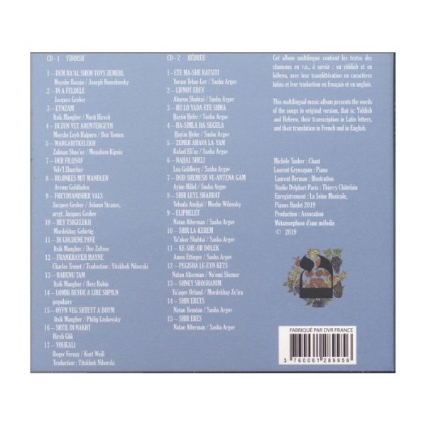 Among the poets and composers, we find Natan Alterman, Lea Goldberg, Yehuda Amihaï, Mordekhay Gebirtig from Cracow, Itsik Manger, Jacques Grober ; Avrom Goldfaden, the father of Yiddish operetta, Sasha Argov, bank employee and then librarian in Tel Aviv, Moshe Wilensky, author of over 1 500 songs, Dov Zeltser composer among others of the famous musical Di megile lider based on Itsik Manger’s poems, Kurt Weil, Charles Trenet, Naomi Shemer, emblematic author and composer in Israel, and many others…