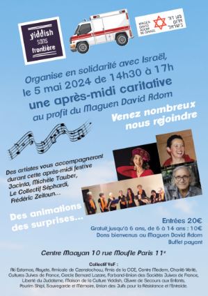 Des artistes vous accompagnerons durant cette après midi festive de 14h30 à 17h : Jacinta, Michèle Tauber, le Collectif Séphardi, Frédéric Zeitoun…