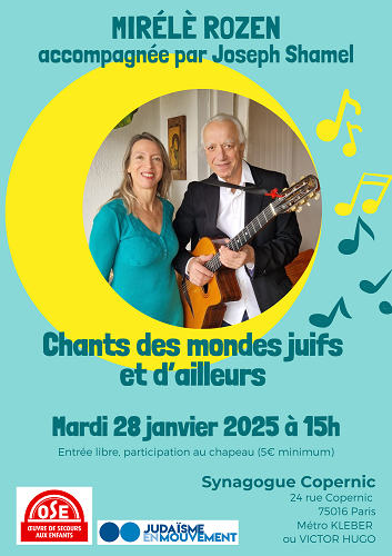 5€Mirélè Rozen et Joseph Shamel vous interpréteront un florilège de chants en yiddish, judéo-espagnol, hébreu, mais aussi en géorgien, arménien et russe tsigane