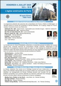 GratuitConcert Vendredi 04/07/2025 – Église américaine de Paris – de 16h à 18h