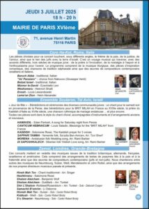 GratuitConcert Jeudi 03/07/2025 – MAIRIE PARIS 16EME – de 18h à 20h