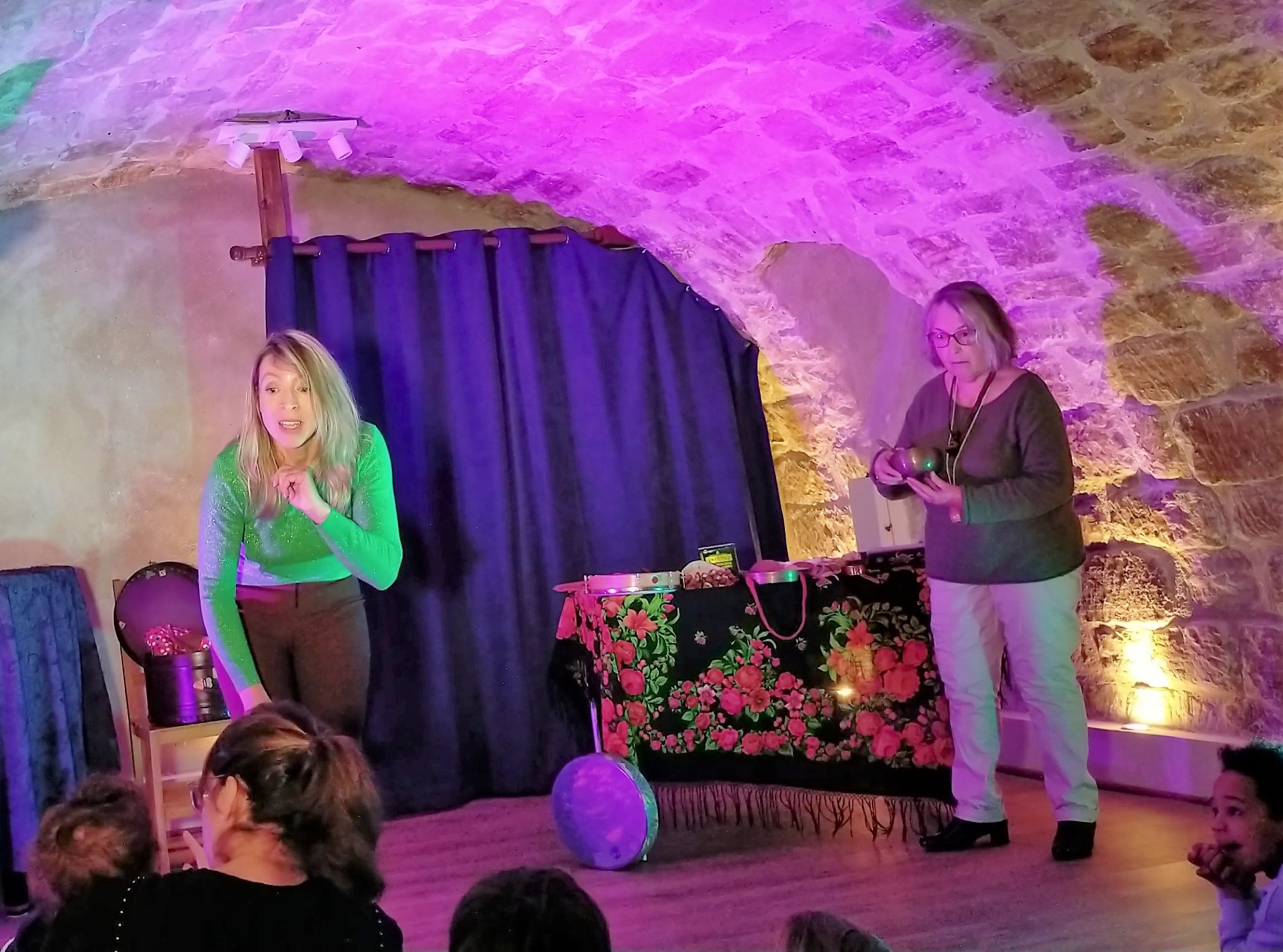«Coquillophone », papiers de soie, coquilles d’escargots et instruments venant de pays lointains, comme la sanza ou le bol tibétain, transporteront enfants et adultes dans un monde imaginaire.