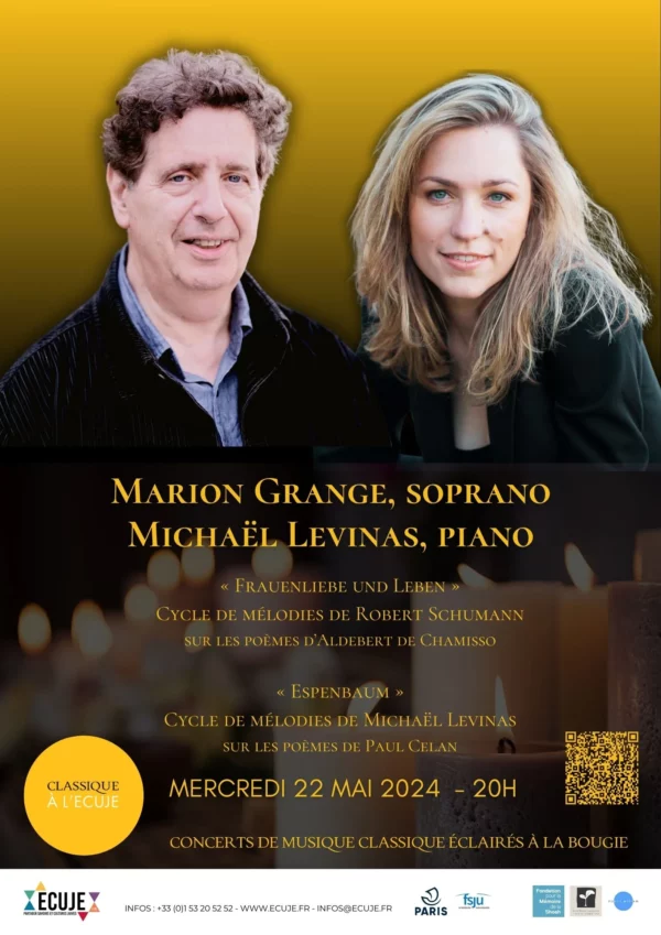 L’Espace culturel et universitaire juif d’Europe est heureux de vous convier au prochain concert de la saison Classique à l’ECUJE par la soprano Marion Grange et le pianiste Michaël Levinas.