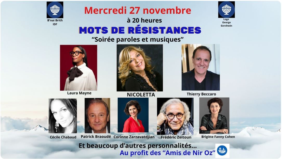 Les bénéfices de la soirée iront aux survivants du kibboutz NIR OZ via l’association « Les amis du kibboutz NIR OZ »