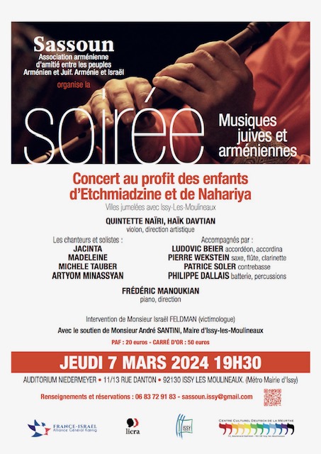 20€ à 50€Concert au profit des enfants d’Etchmiadzine et de Nahariya (villes jumelée avec Issy les Moulineaux)