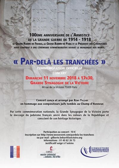 A partir de 17h30, recueillement officiel devant le monument aux morts de la guerre 1914-1918, accompagné par la chorale des enfants du Talmud Torah et le Premier officiant Aron Hayoun.
