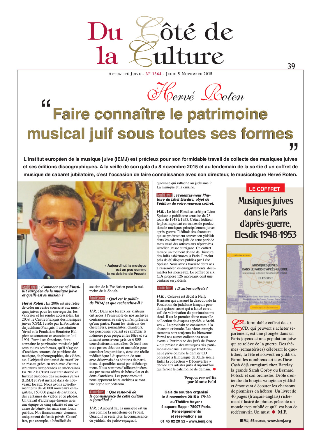 LES TRADITIONS MUSICALES – HANOUKA, par Hervé Roten