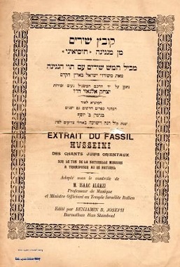 Contemporaneamente, sotto il controllo del famoso hazzan Isaac ben Solomon Algazi, nominato nel 1923 “ministro-ufficiante” e direttore musicale della sinagoga italiana di Istanbul nel quartiere di Galata; Benyamin Rafael ben Yosef pubblica una selezione di canti ebraici orientali dal titolo “Estratto dal fassil Husseini”: questi canti comportano il riferimento al poeta liturgico Yisrael Najara ed al famoso rabbino di Smirne Abraham Ha-Cohen Ariyas.