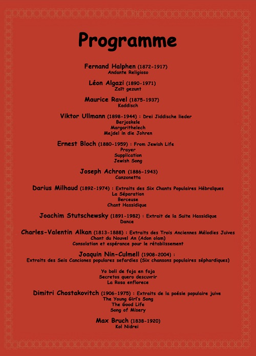 Concerto proposto da: l’Institut Européen des Musiques Juives, le Archives nationales e dalla Direction de l’Action culturelle del FSJU