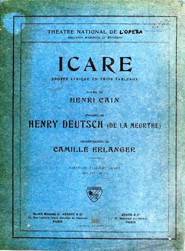 | 3 | Per un’analisi di Icare, si veda Frederico Lazzaro e Marie-Pier Leduc, « Le rêve et la science : Henry Deutsch de la Meurthe, Icare et la musique aéronautique en France avant la Première Guerre mondiale », Intersections, Revue canadienne de musique, 39/2 (2019), p. 61-117. https://www.erudit.org/fr/revues/is/2019-v39-n2-is07232/1091838ar/ |