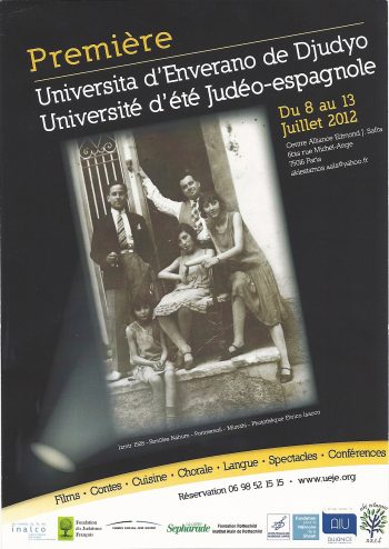 Organizzata da Aki Estamos e dall’AIU, in collaborazione con il CFMJ e l’INALCO, questa prima Università estiva giudeo-spagnola è all’insegna della trasmissione: nell’arco di cinque giorni, infatti, verrà presentata la ricchezza della cultura sefardita attraverso laboratori di lingua, cucina e canto, conferenze e tavole rotonde, spettacoli, proiezioni ed una mostra multimedia.