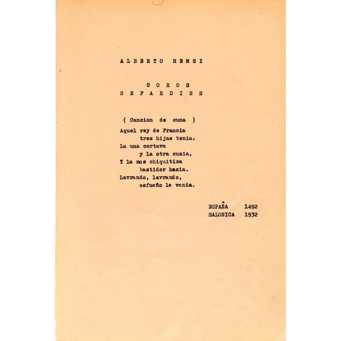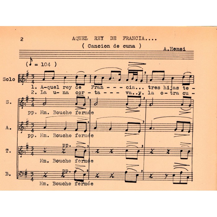 Sefardi choir. Original score printed in 1963 (Paris) by Alberto Hemsi.