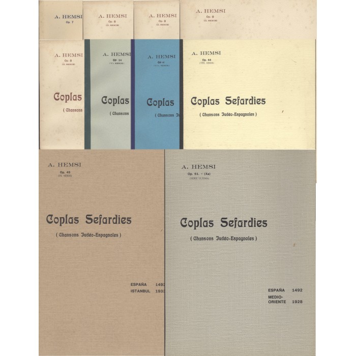 Whole collection of the 10 booklets of Coplas Sefardies, composed by Alberto Hemsi (The first booklet being out is replaced by a fac-simile version)