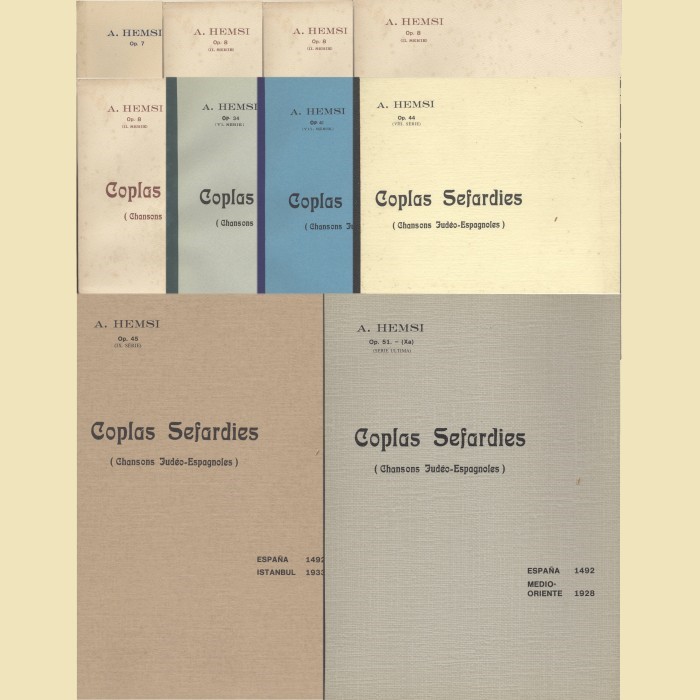 Set of 10 collections of scores of Coplas Sefardies by Alberto Hemsi (All original scores by Alberto Hemsi, except the 1st collection out of print and replaced by a facsimile)