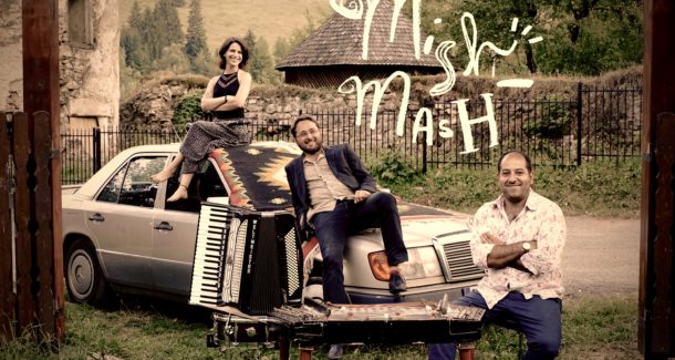 Le petit Mish-Mash, c’est la rencontre entre l’accordéoniste tzigane Adrian Iordan, originaire de Bucarest, le joueur de cymbalum Mihai Trestian, concertiste formé au conservatoire de Chisinau (Moldavie) et la clarinettiste/flûtiste Marine Goldwaser, musicienne de la nouvelle scène klezmer.