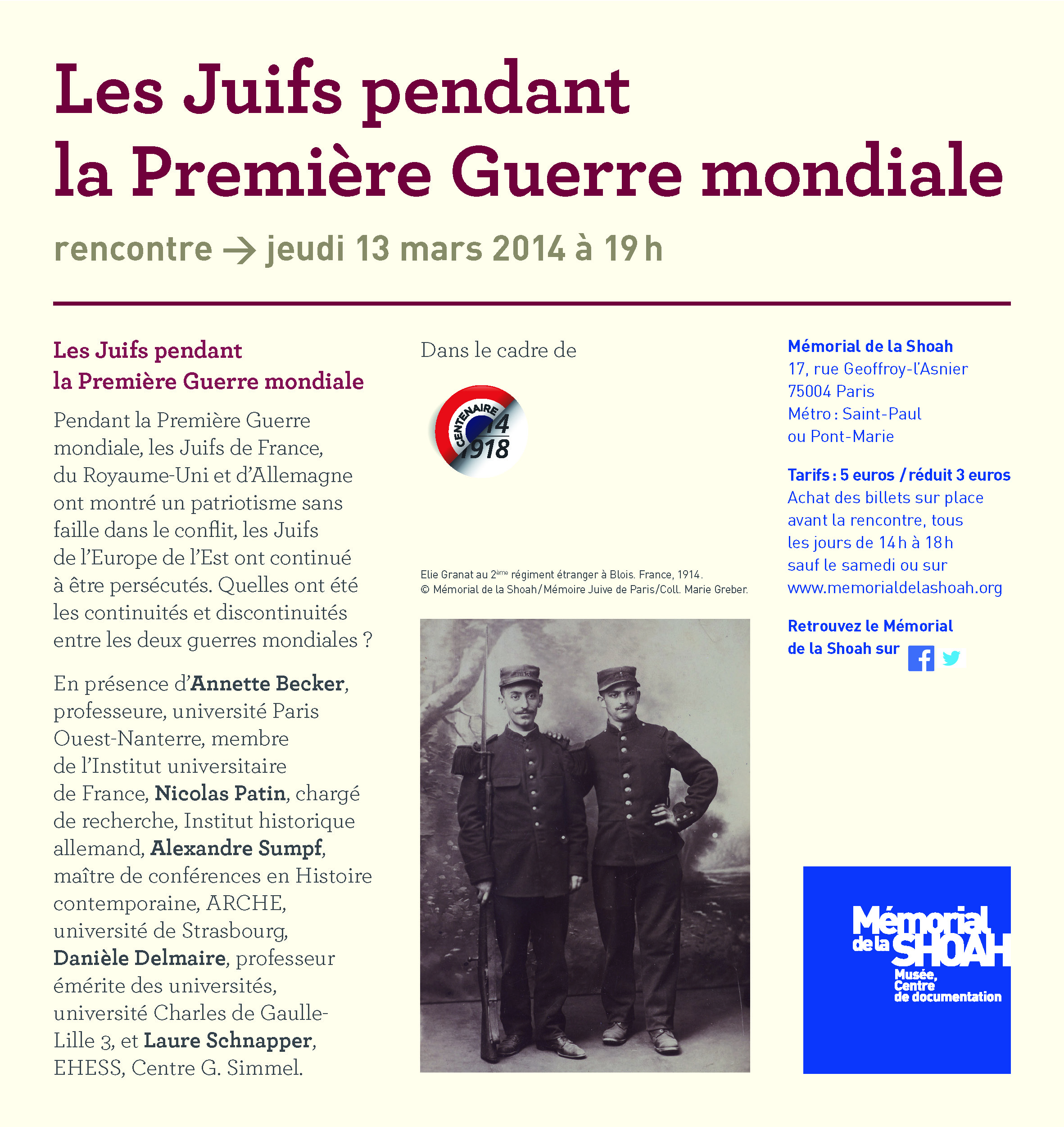 En présence d’Annette Becker, professeure, université Paris Ouest-Nanterre, membre de l’Institut universitaire de France, Nicolas Patin, chargé de recherche, Institut historique allemand, Alexandre Sumpf, maître de conférences en Histoire contemporaine, EA ARCHE, université de Strasbourg, Danièle Delmaire, professeur émérite des universités, université Charles de Gaulle-Lille 3, et Laure Schnapper, EHESS, Centre G. Simmel.