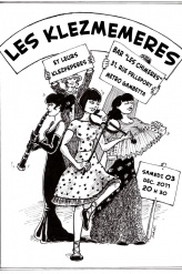 Les Klezméméres, c’est de la musique klezmer et de la chanson yiddish. Les Klezmémères c’est une violoniste, une violoncelliste, un accordéoniste, un banjo (iste?), un percussionniste et un chanteur. Les Klezmémères vous feront rire et danser et peut être même un peu pleurer, mais pas trop !