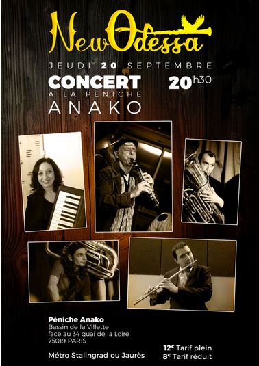 Des thèmes enivrants empruntés au folklore Yiddish joués par le clarinettiste franco-américain Ronald Grun entouré de ses compères, pianiste, percussionniste, tubiste et flûtiste.