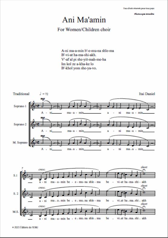 Daniel – Ani Ma’Amin, pour chœur de femmes ou d’enfants
