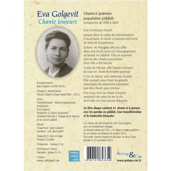 Eva Golgevit chante toujours. Chants et poèmes populaires yiddish. Livre et 2 CDs.