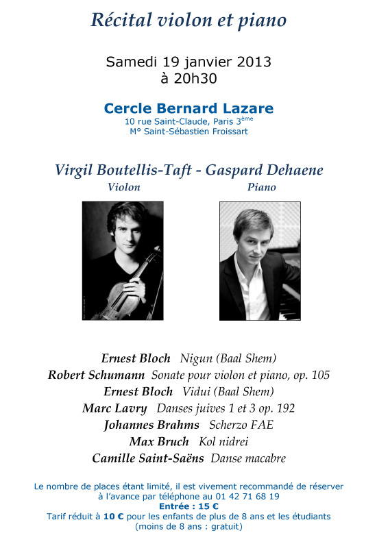 Bloch, Schumann, Brahms, Lavry, Bruch, Saint-Saëns