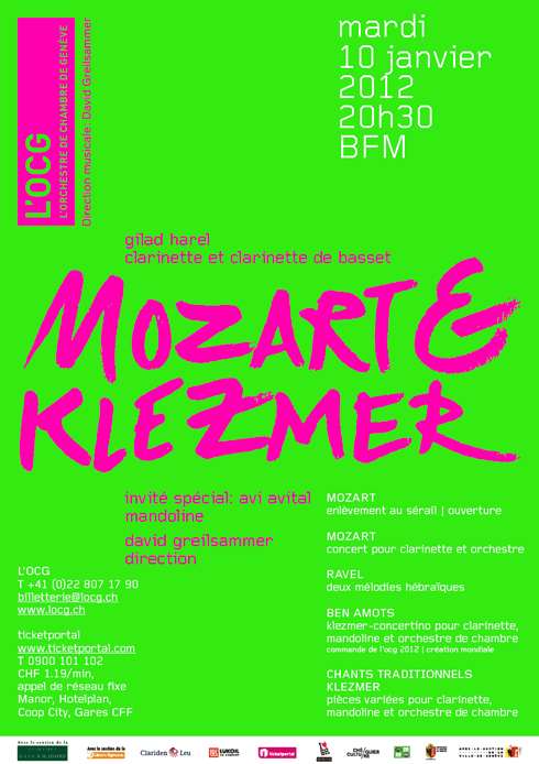 Sous la direction de David Greilsammer, l’orchestre de chambre de Genève propose une soirée exceptionnelle Mozart–Klezmer avec Gilad Harel à la clarinette et clarinette de basset et Avi Avital à la mandoline (Grammy Awards 2010).
